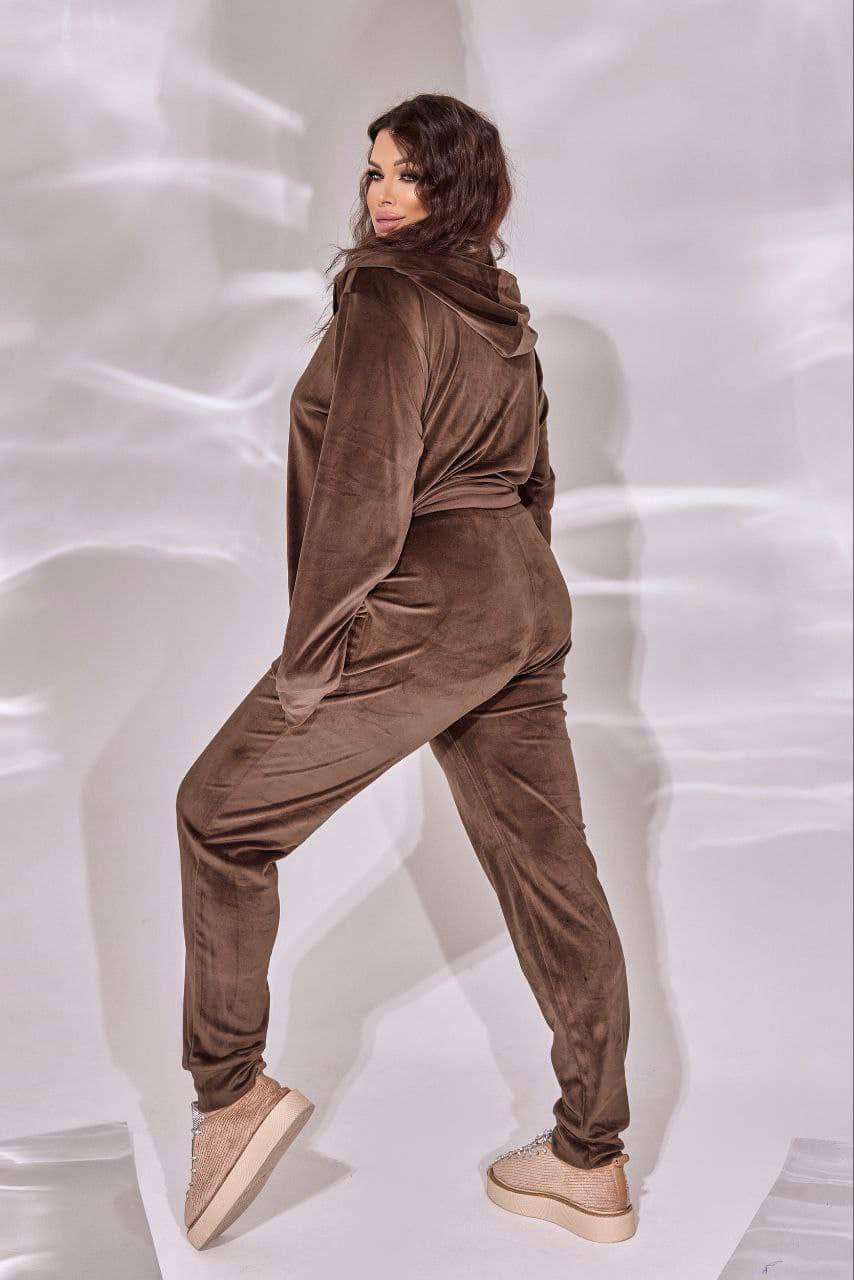 Стильный и комфортный женский костюм из мягкого велюра — отличный выбор для повседневной носки, прогулок и отдыха. Модель свободного кроя красиво сидит на фигуре и подчёркивает силуэт.
