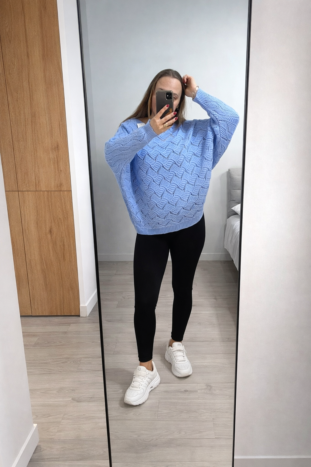 Мягкий и комфортный свитер с красивым ажурным узором — идеальный вариант на каждый день. Свободный крой отлично садится по фигуре и подходит для любого типа фигуры.